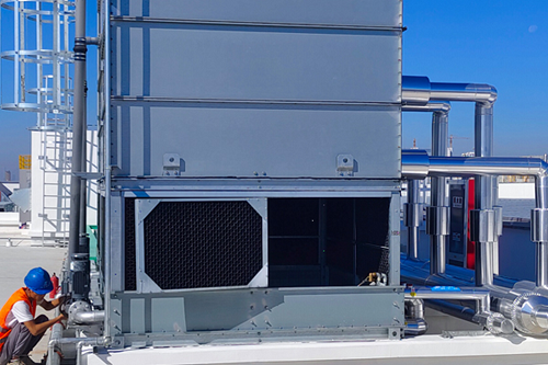 防凍:在寒潮期間,環(huán)境溫度可能會很低,導(dǎo)致設(shè)備出現(xiàn)凍結(jié)、凝固、析出結(jié)晶等現(xiàn)象。因此,需要確保設(shè)備在寒潮期間保持適當(dāng)?shù)臏囟?,避免超出正常工作溫度區(qū)間,對于正在使用中的設(shè)備,需要開啟循環(huán)水塔或冰水機的電輔助加熱功能,配有散熱風(fēng)扇調(diào)節(jié)器的循環(huán)水塔,可以調(diào)節(jié)水塔的散熱扇的開啟溫度,另外,為了降低循環(huán)冷卻水的凝固點,可在循環(huán)的水路中添加適量的乙二醇或防凍液,一般按量添加約35%即可。